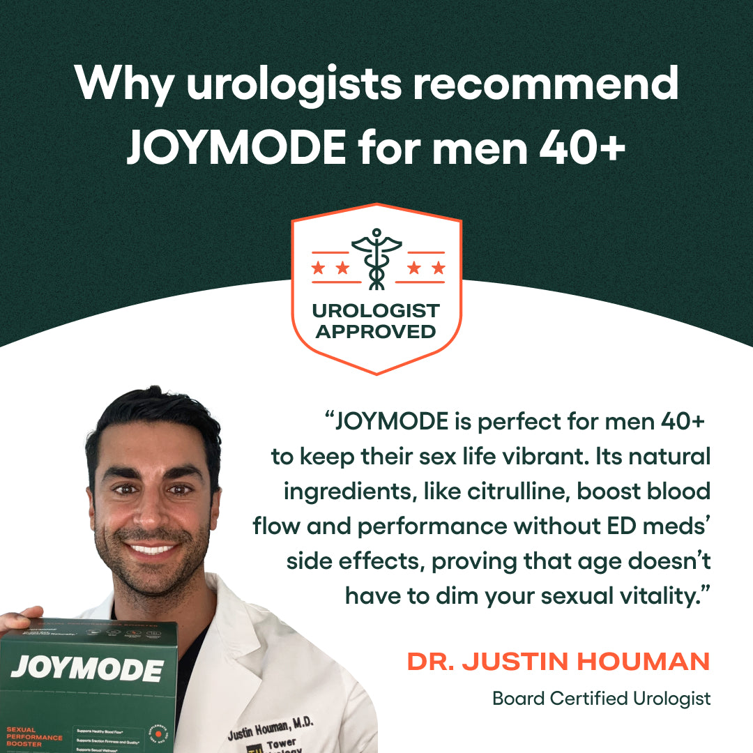 Safety is JOYMODE's top priority. Formulated with clinically tested, all natural ingredients of L-Citrulline and Arginine Nitrate by top health experts, our booster supports your erection health, heart health, and overall wellness without side effects. That's why urologists nationwide recommend JOYMODE over leading prescription ED medications.